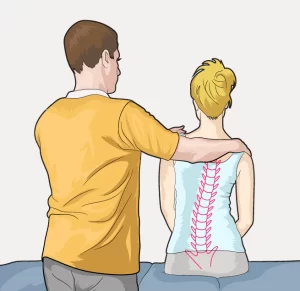 因此,父母在家中可自行帮孩子做个检查。检查时,让孩子脱去衣物或穿背心,家长用食指、中指、无名指,放于孩子棘突的位置,向尾椎下划,看看脊柱直不直,能否画出一条直线。让孩子站立,观察两肩膀是否有高低肩的问题。再找到孩子背部的肩胛骨处,看看两侧肩胛骨最下端是否在同一条水平线上。用手触摸孩子背部的肩胛骨,有没有一侧的肩胛骨向后凸起。